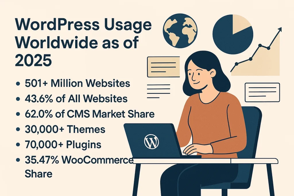Khám phá những con số lớn về WordPress vào đầu năm 2025: hơn nửa tỷ trang web, thị phần CMS áp đảo, xu hướng chủ đề, plugin và thương mại điện tử. Cùng phân tích ý nghĩa và tác động đối với người làm web.